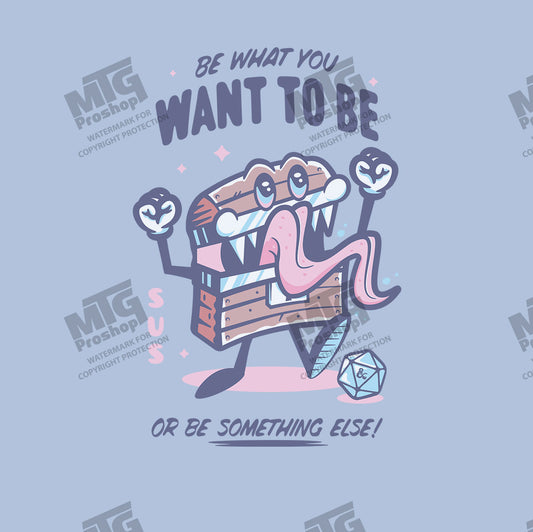 ñBe What You Want To Beî Mimic Printed Tee in Ice Blue for Dungeons & Dragons 2024